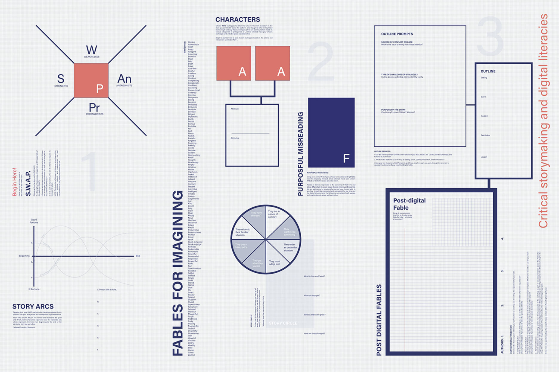 Fables for Imagining is a storymaking tool and workshop series that uses fable writing to build digital fluencies beyond functional understandings of technology. Drawing on the long history of fables as moral and cautionary stories, the project invites participants to use familiar storytelling forms to explore the values, power structures, and consequences embedded in digital technologies. Through creating their own techno-social fables, participants reflect on how technologies shape everyday life and social roles, while imagining alternative futures. The workshops use fabulation to bring overlooked facts and everyday realities together, helping participants question their current situations and connect personal experiences with wider social and civic concerns.